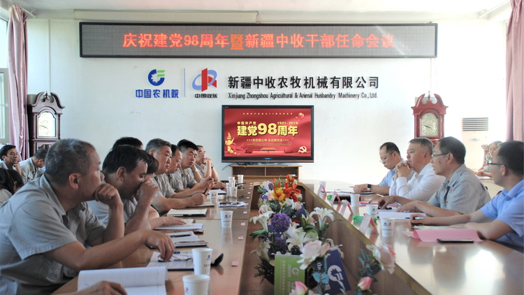 7月1日,新疆中收召開(kāi)慶祝中國(guó)共產(chǎn)黨建黨98周年暨干部任命會(huì)議。中國(guó)農(nóng)機(jī)院黨委書(shū)記、院長(zhǎng)王博,院長(zhǎng)助理、新疆中收董事長(zhǎng)柯長(zhǎng)松,院人力資源部(黨委組織部)副部長(zhǎng)曹雪生,院務(wù)工作部副部長(zhǎng)尚小龍,新疆中收中層以上領(lǐng)導(dǎo)干部,各基層黨組織書(shū)記、支委,職能部門全體員工和青年骨干參加了會(huì)議。